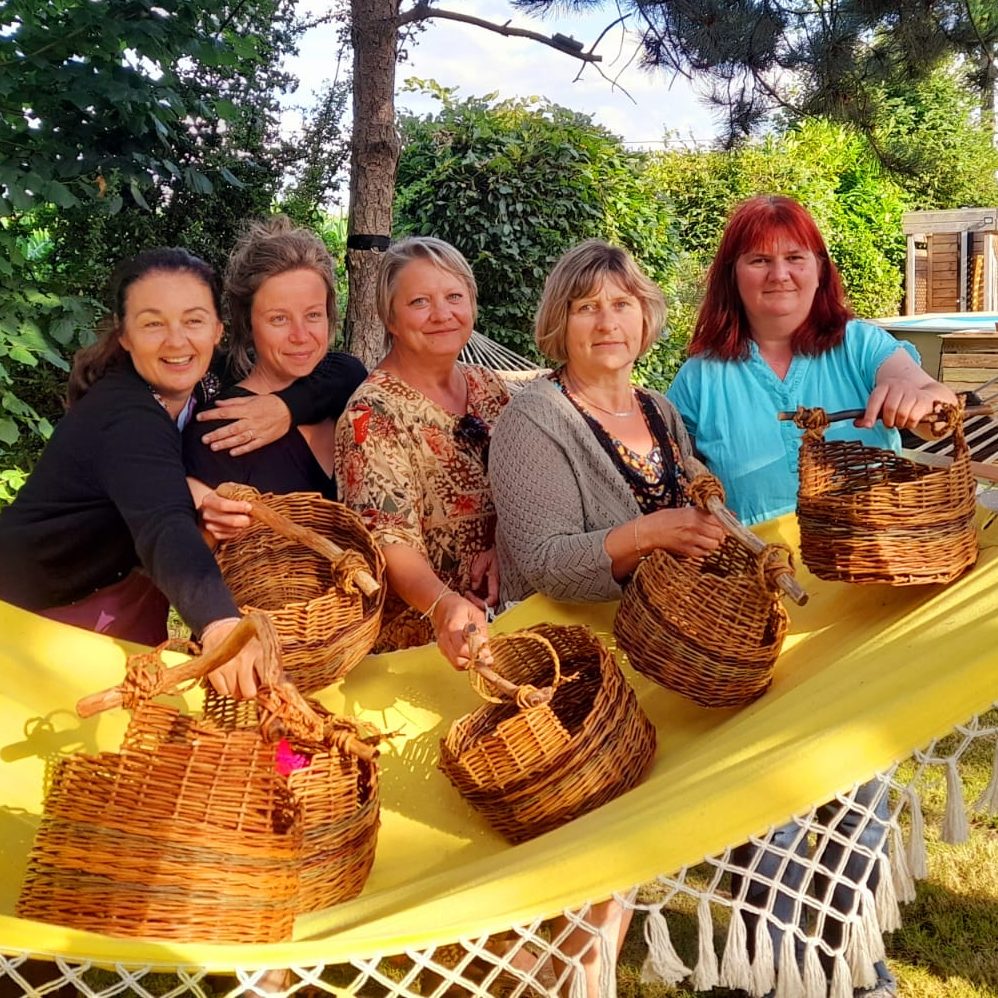 Retrouver de la vannerie pour tout les niveaux, en commençant par un stage découverte en créant une abeille, ou alors un stage à la journée pour créer un nid.